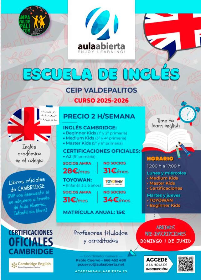 AULA ABIERTA De 3 a 5 años (método TOYOWAN) y a partir de 1º de Primaria (preparación examen Cambridge y certificaciones oficiales) Inscripción
